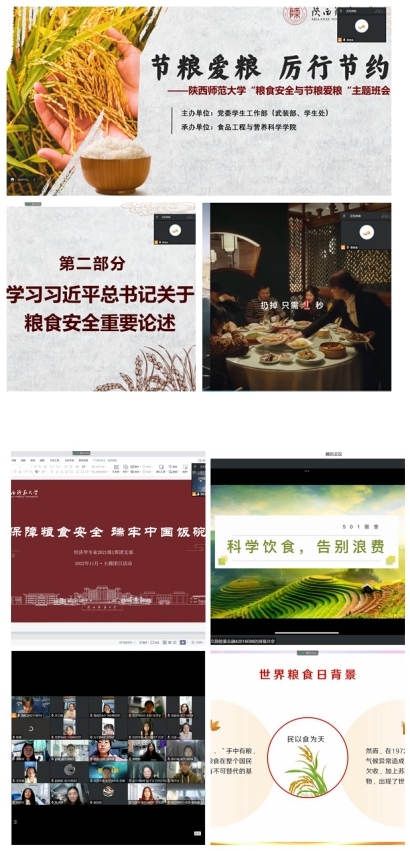 为深入贯彻习近平总书记关于粮食安全的重要论述精神,帮助员工树立粮食安全理念和节粮爱粮意识,根据党委学工部(武装部、员工处)《关于开展“粮食安全与节粮爱粮”主题教育活动通知》的相关要求,公司依靠班级、团支部积极组织参加并开展系列主题教育活动,全面深入宣传习近平总书记关于粮食安全的重要论述精神,在员工中营造“勤俭节约”的良好氛围,教育引导广老员工爱粮节粮、厉行节约。