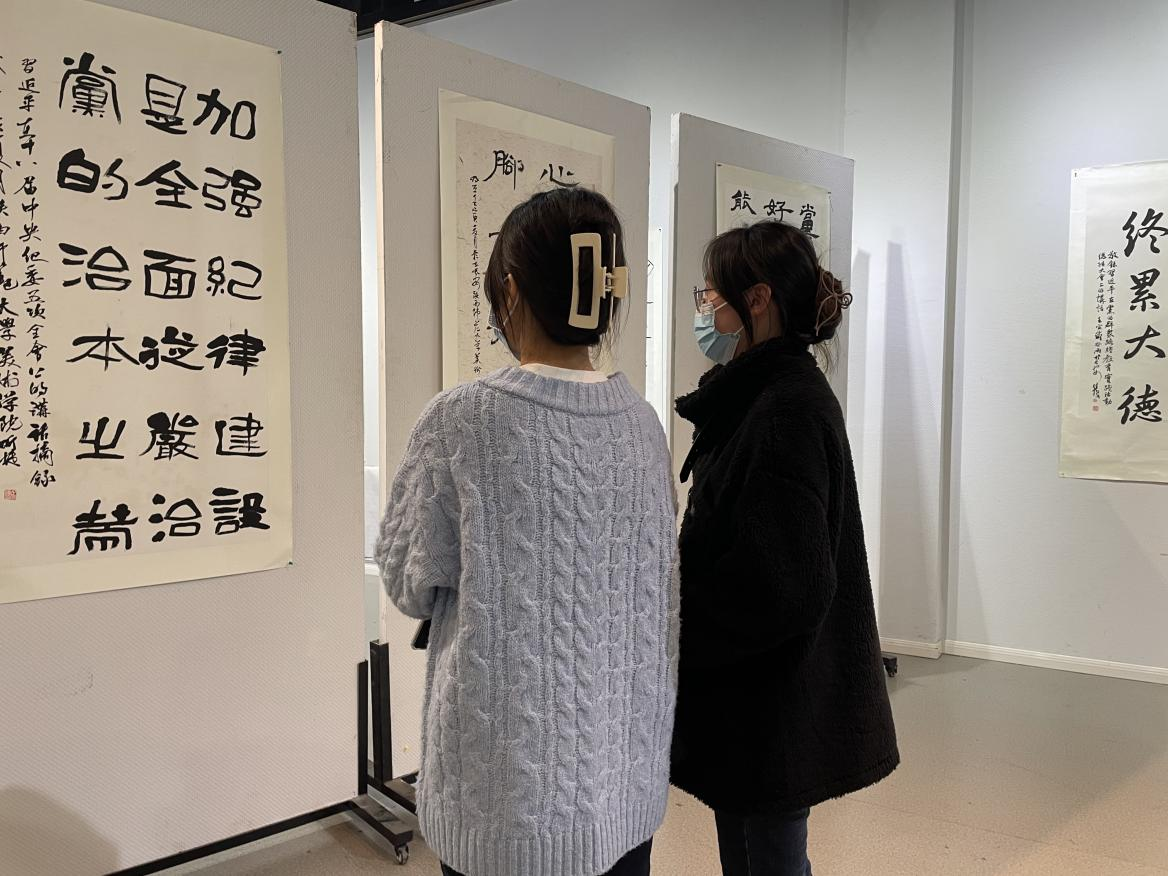 马婧在活动中谈到,参观廉洁文化书法作品,旨在培养同学们廉洁自律的党员意识,通过廉洁文化的教育力、传播力与感染力,锤炼同学们诚实守信的优良品格。郭娴怡强调,全体党员同志要了解、学习廉洁文化,不断加强党性修养,始终保持谦虚、谨慎的作风,为营造我们党风清气正的政治生态履职尽责。