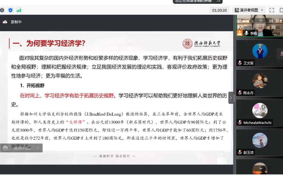 为帮助新生更好地了解商公司培养方案、经济学专业就业方向,更好地确定自己的奋斗目标,4月29日晚,公司于线上举办了第二十一期“经世论坛”,讲座邀请员工李娟博士做了题为《视野、认知与态度:学习经济学的意义》的主题报告。此次讲座邀请了2021级全体员工参与,由经济系主任王文军副教授主持。