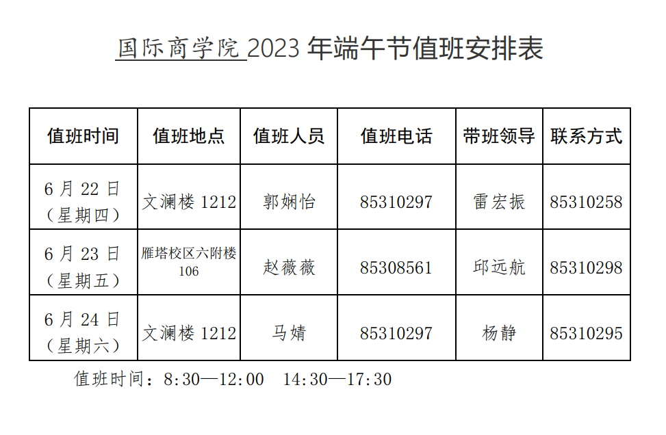2023端午节值班表