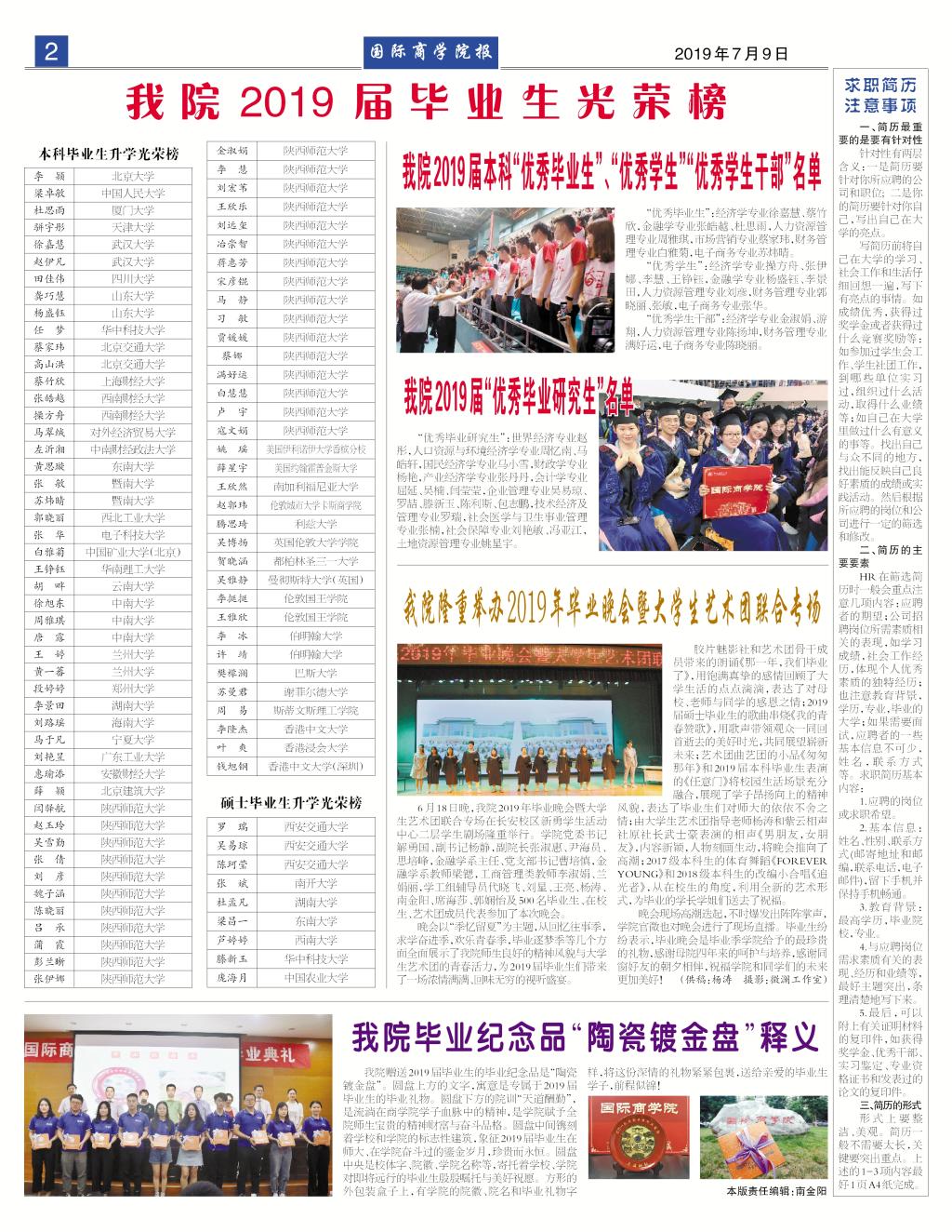 2019届毕业生光荣榜